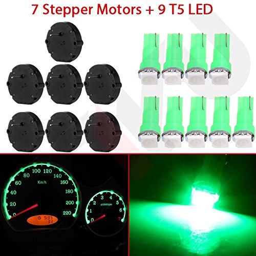 cciyu 7 Qty Speedometer/Gauge Instrument Cluster Repair Stepper Motor + 9 T5 Green Instrument Led Bulbs