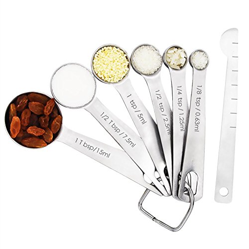 Stainless Steel Measuring Spoons, 18/8 Stainless Steel Measure Spoon Set of 7 with Measuring Stick for Baking and Cooking