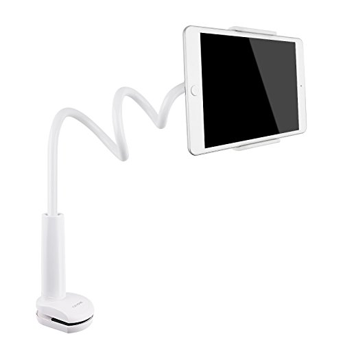 Tryone Gooseneck Tablet Stand, Tablet Mount Holder Compatible with iPad iPhone Series/Nintendo Switch/Samsung Galaxy Tabs/Amazon Kindle Fire HD and More, 30in Overall Length(White)
