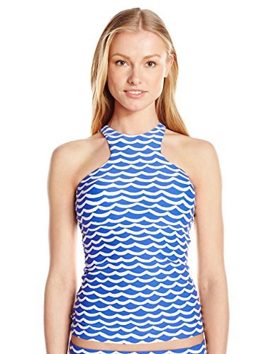 Seafolly Women's Block Party High Neck Singlet Tankini Swimsuit Top, Tidal Wave Blu-Ray/White, 10 US