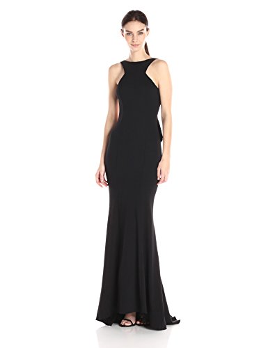 Xscape Women's Long Ponte with Open Ruffle Back, Black, 10