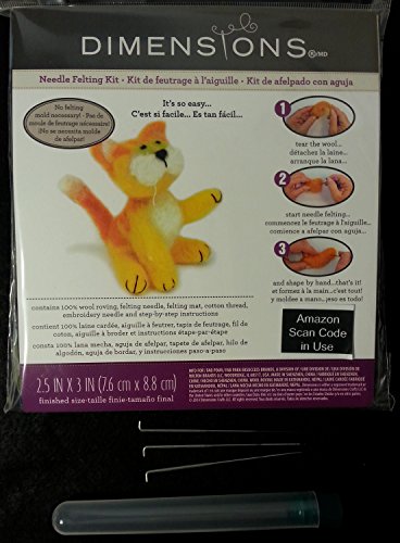 Orange Tabby Needle Felting Bundle of 2 Items: Cat Needle Felting Kit and Set of 3 Reverse Needles for Fur and Color Blending