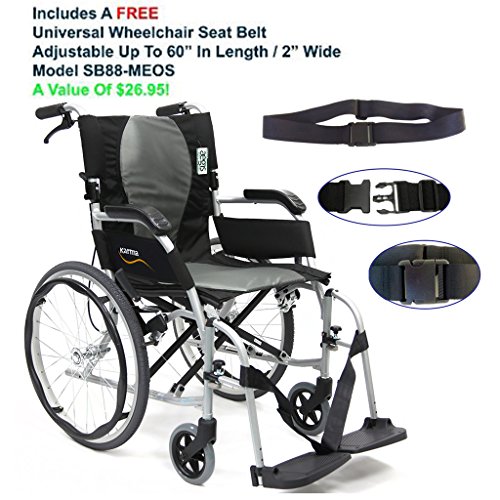 Karman S-2512F18SS - ERGO FLIGHT – S-2512 18" Seat Width, Ultra Lightweight Ergonomic Wheelchair, Pearl Silver,Fixed Wheel, Fixed Armrests, Detachable footrest & FREE Wheelchair Seat Belt!