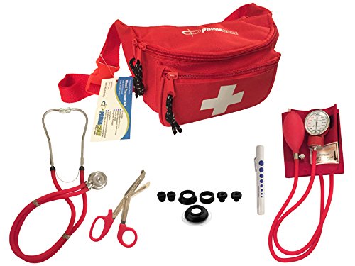 Primacare KB-9181-RD Professional Series Blood Pressure Kit with Sprague Rappaport Style Stethoscope Fanny Pack Combo, Red