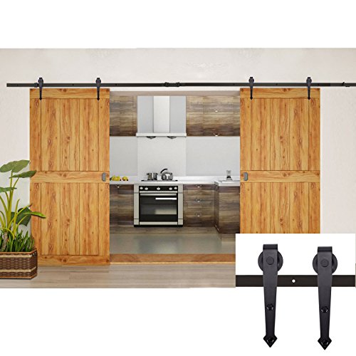 6.6 FT Heavy Duty Sliding Barn Door Hardware Kit Black (Modern Style), Superior Quality, Ultra Quiet, Tested Beyond 100,000 Rolls (12ft-arrow)