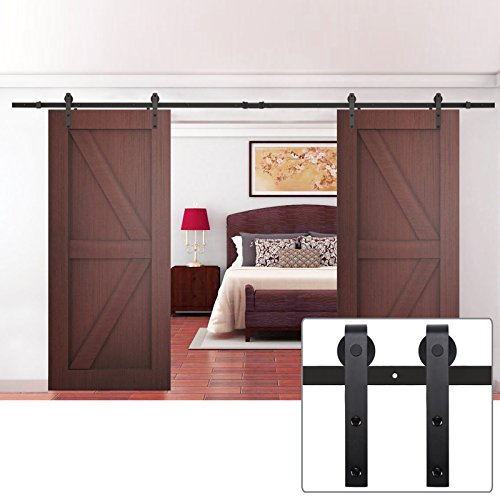 6.6 FT Heavy Duty Sliding Barn Door Hardware Kit Black (Modern Style), Superior Quality, Ultra Quiet, Tested Beyond 100,000 Rolls (12ft-ractange)