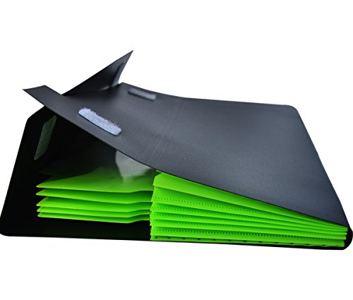 KOBEST Pocket document file Poly Expanding A4 and Letter Size File Organizer, 5 Pockets, stylishwith a Nylon button colorful and very lightweight(black&green)