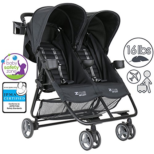 ZOE XL2 SPORT Xtra Lightweight Double Stroller (Black Sport)