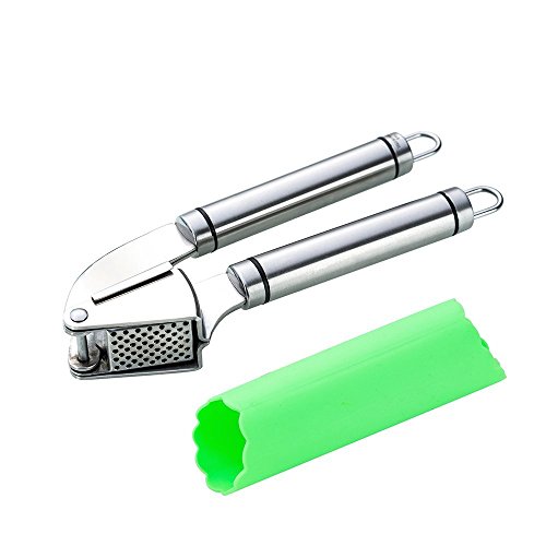Apriller Premium Stainless Steel Garlic Press / Crusher & Silicone Peeler Set, Crush Garlic Cloves & Ginger with Ease
