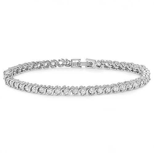 STEELTIME Women's Beautiful 18k White Gold Plated CZ Wave Tennis Bracelet