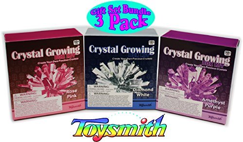 Toysmith Crystal Growing Kit Amethyst Purple, Rose Pink & Diamond White Gift Set Bundle - 3 Pack