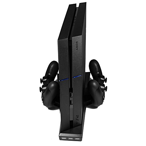 Vorbana Dual Charging Station, Vertical Stand, and Cooling Fan Playstation 4 (PS4). Comes with 3 USB Ports for your Playstation Accessories.