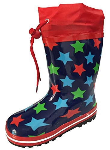 A.O.R. Toddler and Youth Kids Unisex Blue with Stars Design Rain Boot Snow Boot with Tie and Lining