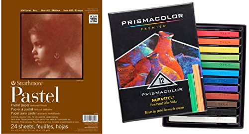 Strathmore 80-Pound 24-Sheets Assorted Pastel Paper Pad, 9-Inch by 12-Inch with a 12 Count Prismacolor Nupastel Set