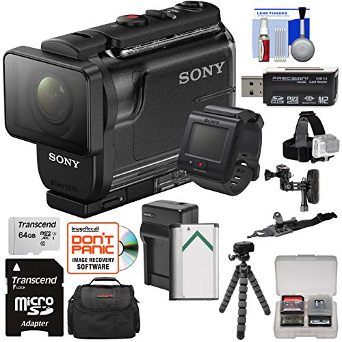 Sony Action Cam HDR-AS50R Wi-Fi HD Video Camera Camcorder & Live View Remote + 64GB Card + Battery/Charger + Case + Tripod + Flat Surface & 2 Helmet Mounts Kit