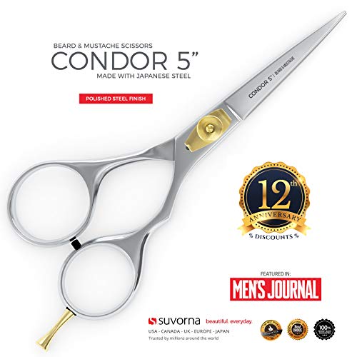 Suvorna 5" Men's Beard & Mustache Trimming, Cutting and Styling Scissors with Tension Adjustment. Only Razor Edge Barber Scissors Designed for Next Level of Beard Grooming -