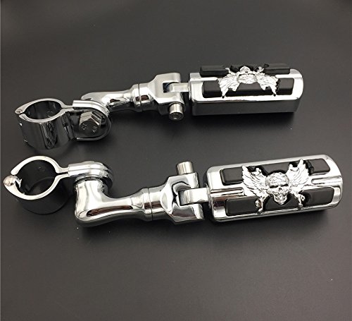 SMT Motorcycle Chrome Short Angled Adjustable Peg Mounting Kit Wing Zombie Sull Foot Peg Footrest Harley Davidson Sportster 883 1200 Street Bob Softail CVO with 1 1/4 inch Front Engine Guard