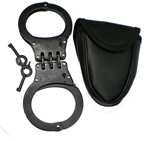 The X Bay BLACK HINGED Police Heavy Duty Handcuffs Includes Belt Hand Cuff Case Double Locking