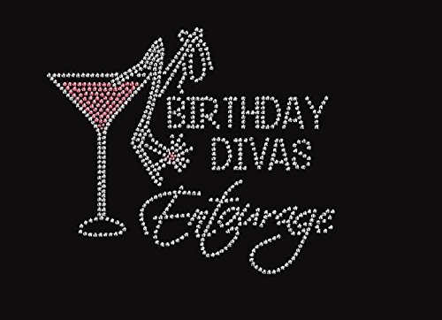 Birthday Divas Entourage with Martini Rhinestone Iron on Transfer