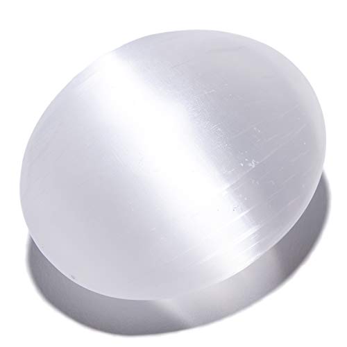 KALIFANO Selenite Worry Stone with Healing & Calming Effects - High Energy Palm Stone Used for Cleansing and Protection (Information Card/Certificate of Authenticity Included)