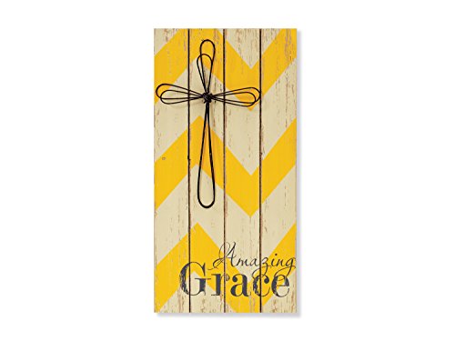 Large Amazing Grace Wooden Wall Decor with Metal Cross 16" x 8"