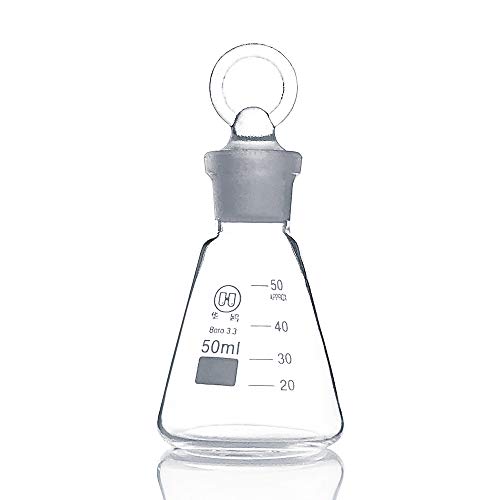 Huaou 50ml Laboratory Chemical Boro Glass Erlenmeyer Conical Flask with Solid Stopper