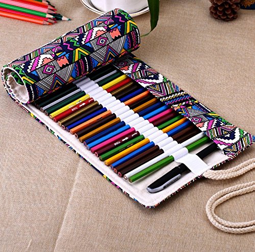 Forsun Canvas Pencil Wrap, Pencils Roll Case Hold For 48 Colored Pencils (Pencils are not included)-Bohemian Stlye