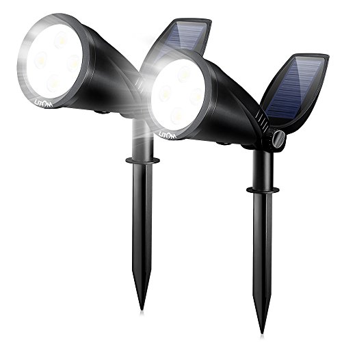 LITOM Upgraded 2-in-1 Solar Landscape Spotlights Lights with 2 Solar Panels & 2 Modes, Auto On/Off Waterproof Outdoor Solar Powered Wall Lights for Garden Patio Backyard Garage Driveway Bush 2 Pack