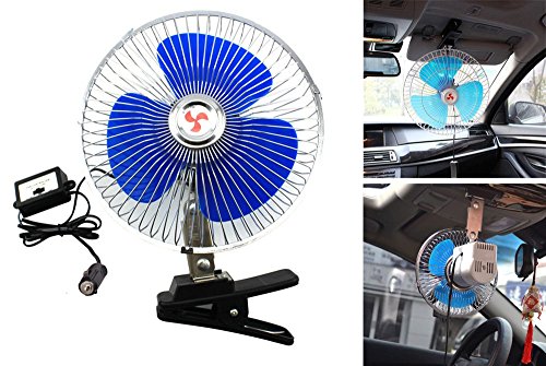 Jhua 12V 8 inch Car Oscillating Fan Automobile Car Fan Vehicle Cooling Fan With Clip Cigarette Lighter Plug Black