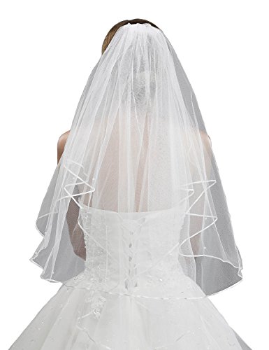 Shine Love Women's 2 Tier Spark Bridal Pearl Wedding Veil With Comb 11001