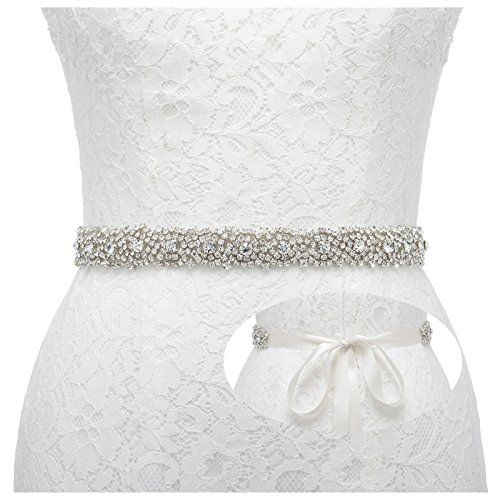 Remedios Rhinestone Bridal Belt Bridesmaid Sash Crystal Wedding Belt Women Dress Accessories, Ivory