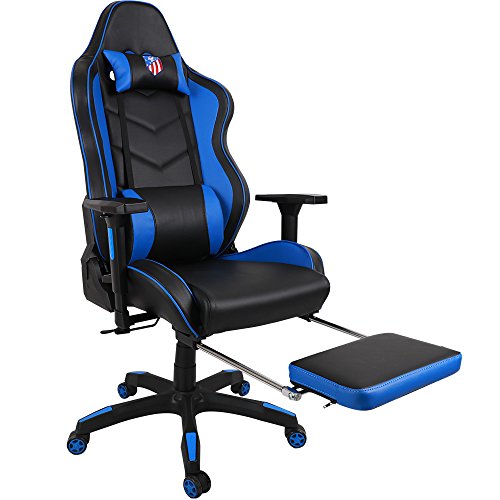 Kinsal Ergonomic High-Back Large Size Gaming Chair, Office Desk Chair Swivel Blue PC Gaming Chair with Extra Soft Headrest, Massage Lumbar Support and Retractible Footrest (Blue)