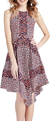 Donna Morgan Women's Sleeveless Twill Printed Dress with Asymmetrical Hem, Headlight Multi, 12