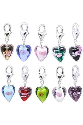 HOUSWEETY 20PC Glass Heart Clip On Charm Fit Link Bracelet