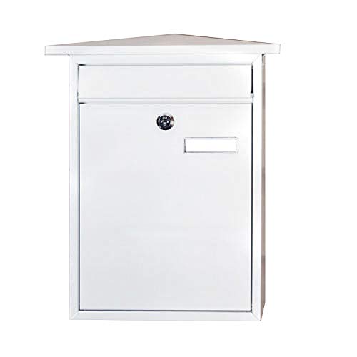 Naiture Steel Home Locking Wall Mount Mailbox White Powder Coat Finish