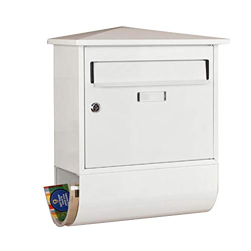 Naiture Steel Castle Locking Wall Mount Mailbox with Newspaper Roll White Powder Coat Finish