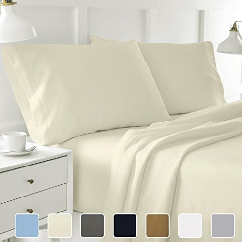 Cottington Lane King XL Sheets Soft 100 Percent Cotton- Sheet Set for King XL Bed Ivory 400 Thread Count 15 Inch Super Deep Pocket