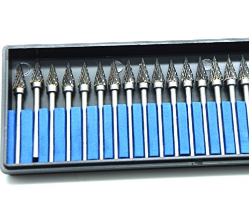 Wokesi Pack of 10,1/8''(3mm)Diameter,1/8''(3mm)Shank,Type A,Solid Tungsten Carbide,Rotary Burr Set,Taper Points Grinding Head Fit Dremel Engraving Bits Cutting Endmill Micrograin Buffing Burrs Tools