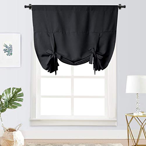 Rose Home Fashion RHF Tie Up Shades -Rod Pocket Thermal Insulated Blackout Tie Up Curtains, 42 Inch Wide by 63 Inch Long Panel-Black