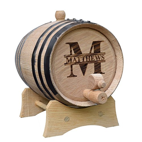 Custom Whiskey Barrel - Personalized Wine Barrel - Engraved Oak 2 Liter Barrel - Classic Design
