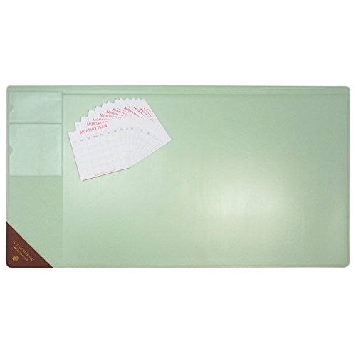 Vintage Desk Pad with Pocket Size 14 AHZOA Monthly Plan Cards, 25.2 X 13.4 Inch Desk Mat Clear Transparent Cover (Mint)