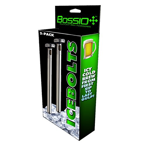 Best Beer Chiller Sticks - BOSSIO® ICEBOLTS - [2 Pack] Stainless Steel - BONUS Craft Beer Temperature Guide