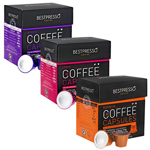 Bestpresso Coffee for Nespresso Original Machine 60 pods Certified Genuine Espresso Intense Variety Pack 3 Flavors, Pods Compatible with Nespresso Original
