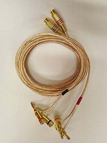 14 AWG Speaker wire pair with RCA Female (Black & Red) to 2 pair Stackable Banana Plugs - 1 Foot