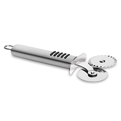 Pastry Ravioli Double Cutter Wheel Made of Stainless Steel with Aluminum Handle Silver 2-inches by Topenca Supplies