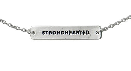 "Stronghearted" Stamped Bar Bracelet on "Be Brave" Message Card - Silver Plated and Boxed