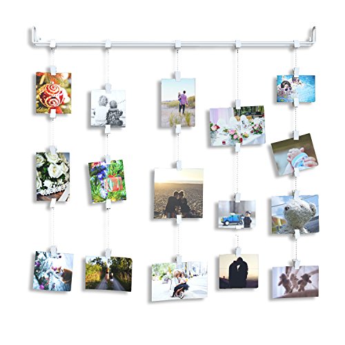 Hanging Photo Organizer Rail With Chains and 32 Clips Cream Perfect For Collage Picture Craft Art Display Projects
