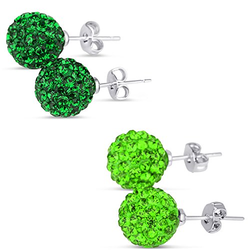 Unique Sterling Silver 6mm Each 925 Dark Green & Lime Green Cubic Zirconia Crystal Bead Ball Combo Stud Earrings