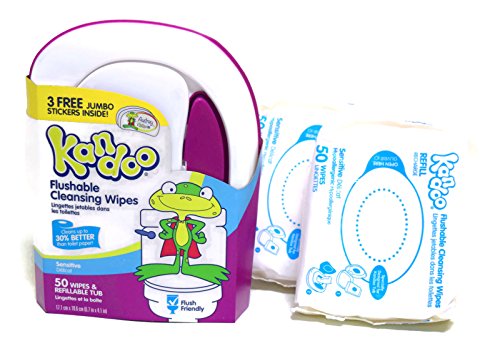 Pampers Kandoo Sensitive Flushable Wipes Just Getting Started Bundle with 50 Ct Tub and 2 Refill Packs