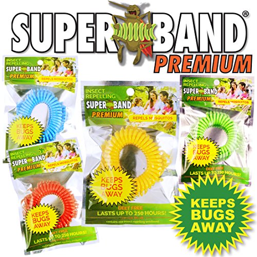 New 2016 Insect Repelling SUPERBAND PREMIUM Wristband in New Assorted Colors! Red, Blue, Green, and Yellow - New Green Packaging! (15)